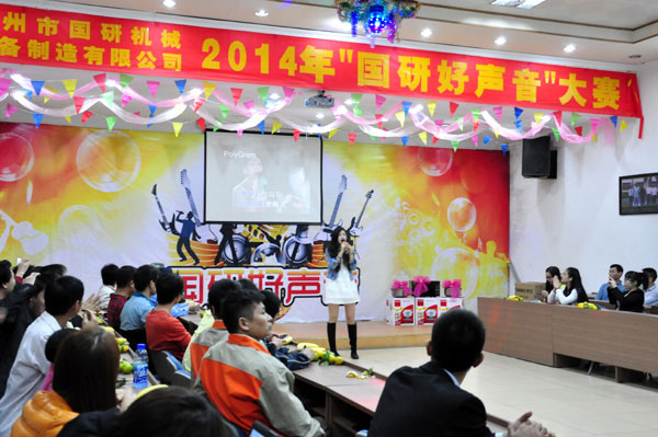11月17日晚,在廣州市國研機械設備制造有限公司的多功能會(huì )議廳洋溢著(zhù)一派節日的氣氛,員工們個(gè)個(gè)興高采烈一掃往日的疲憊,大家期待已久的“國研好聲音”決賽正在如火如荼地緊張進(jìn)行著(zhù)。選手們的精彩演唱高潮迭起,讓賽場(chǎng)上的掌聲雷動(dòng)。那些平時(shí)默默無(wú)語(yǔ)工作在生產(chǎn)一線(xiàn)的員工在比賽中都展示了他們積極向上樂(lè )觀(guān)進(jìn)取的生活態(tài)度,迸發(fā)出了精彩的演出。選手們經(jīng)過(guò)2個(gè)多小時(shí)的激烈角逐,評委根據各個(gè)選手的音準、音色、音調等多項的綜合因素公平打分,評選出大賽的各個(gè)獎項。